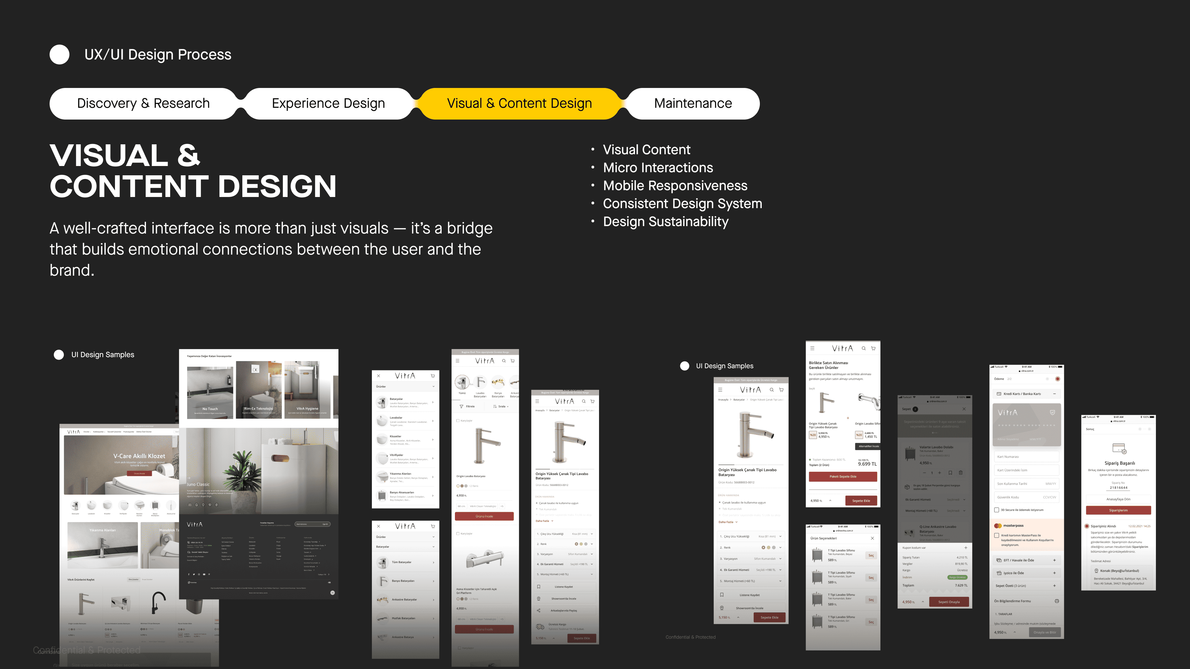 I conducted a thorough analysis of both direct and indirect VitrA competitors' websites to assess their feature sets, information architecture, best UX/UI practices, and visual style. I got valuable insights on the best practices to adopt and areas to avoid. This audit became a roadmap for our design concept.