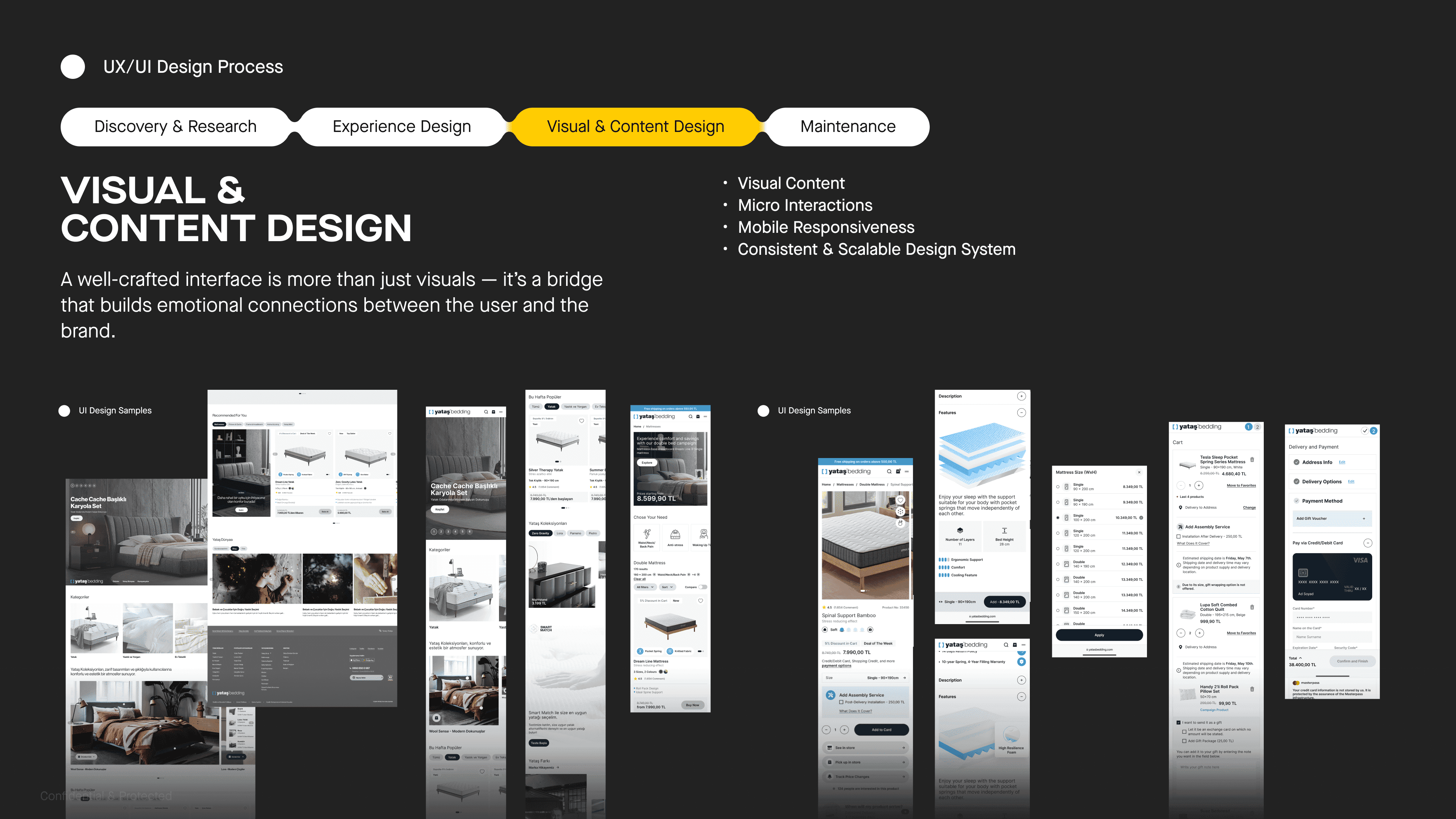 Yataş Bedding is continuously evolving with its innovative and functional design approach. In this redesign project, the brand sought to reflect its strong identity in the digital space through a user-centric experience — combining intuitive functionality, modular design, and a clean visual language that mirrors its contemporary take on comfort.